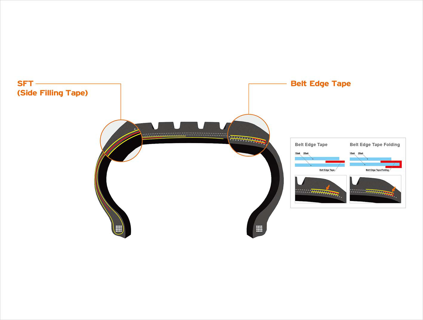 Ventus S1 Noble2에 SFT를 적용해 내구성을 높였습니다. 첫 번째와 두 번째 벨트 사이에 고무 시트를 결합해 타이어 벨트 엣지가 분리되지 않도록 하고 내구성을 높였습니다.